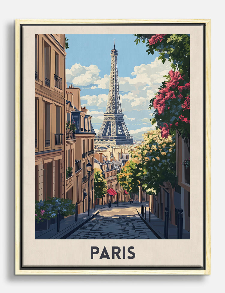 Step into the heart of Paris with this stunning vintage-inspired piece. The iconic Eiffel Tower rises majestically over a charming cobblestone street, inviting you to dream of romantic strolls and timeless adventures. Perfect for your living room or bedroom, this artwork’s warm tones and classic style blend seamlessly with any decor, bringing a touch of Parisian elegance to your home.