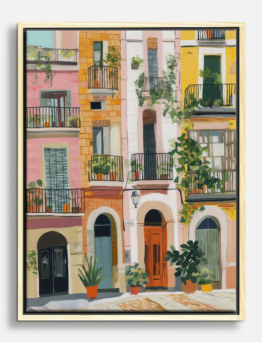 Sunlight spills across pastel balconies and leafy terraces, inviting you to wander the colorful streets of Barcelona—right from your own home. This lively piece radiates warmth and character, instantly making any space feel more welcoming and full of life.