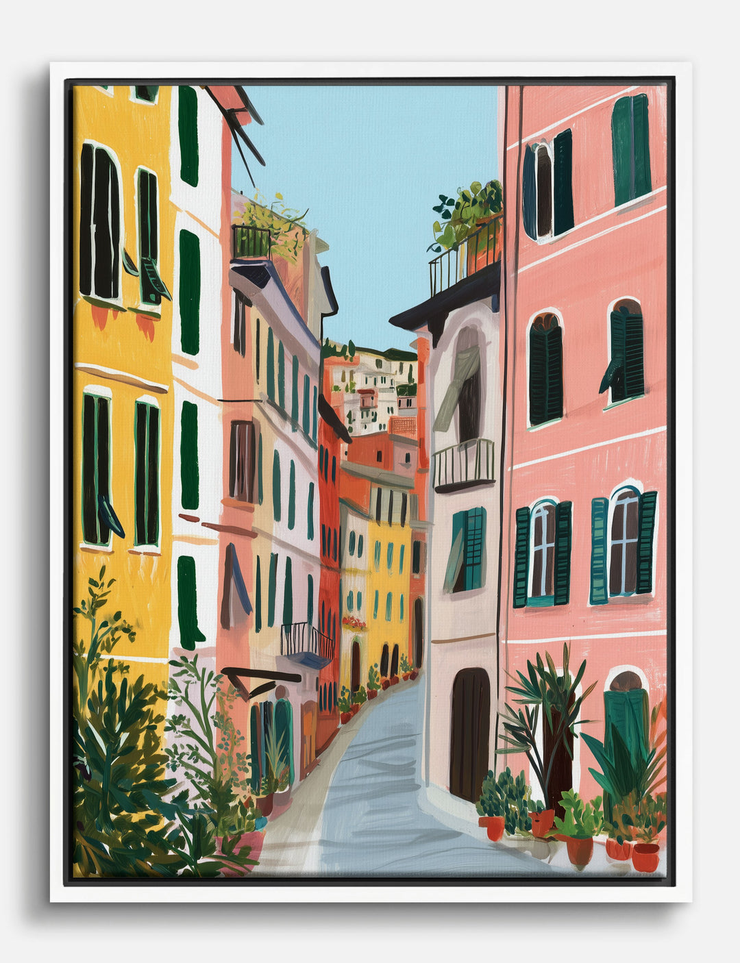 A sun-soaked stroll through pastel alleyways—this piece transports you straight to the heart of a charming Italian village. The cheerful pinks, buttery yellows, and lush greens breathe instant warmth and energy into your space, making every day feel like a vacation.