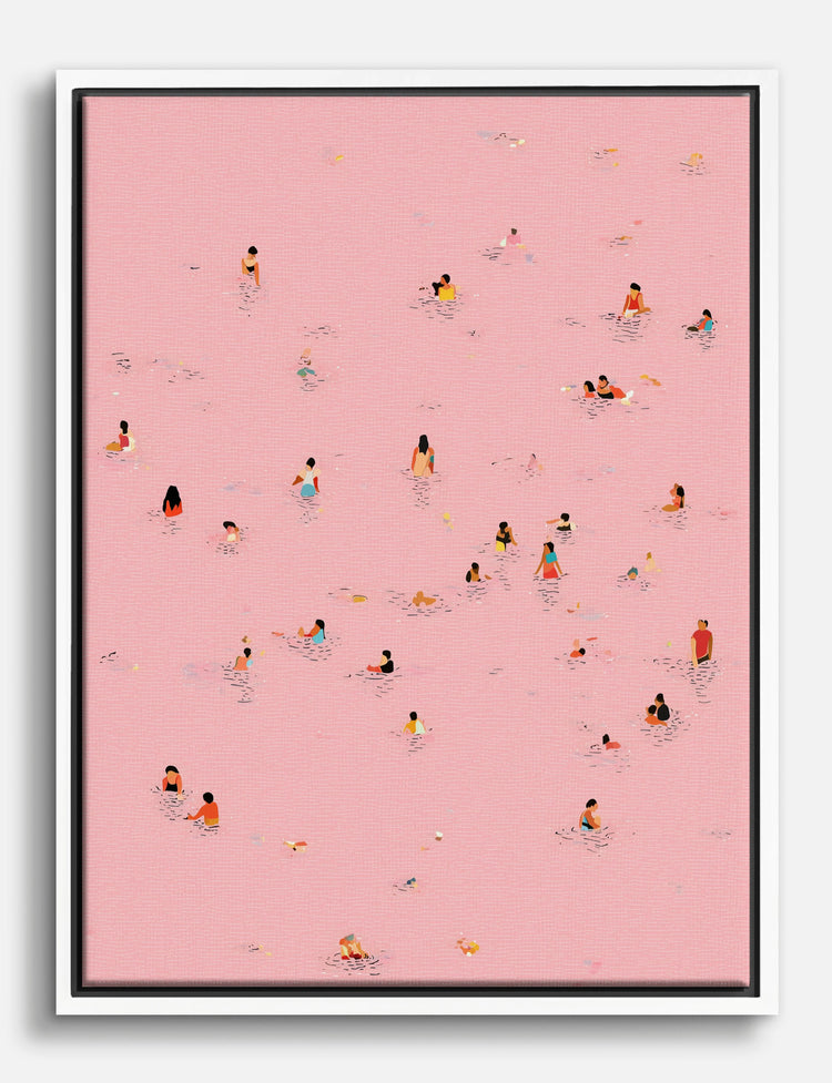 A splash of summer energy, right on your wall. This playful piece captures the carefree spirit of a perfect pool day, where tiny swimmers dot a dreamy pink sea. It’s the kind of art that makes your space feel instantly lighter and more joyful, no matter the weather outside.