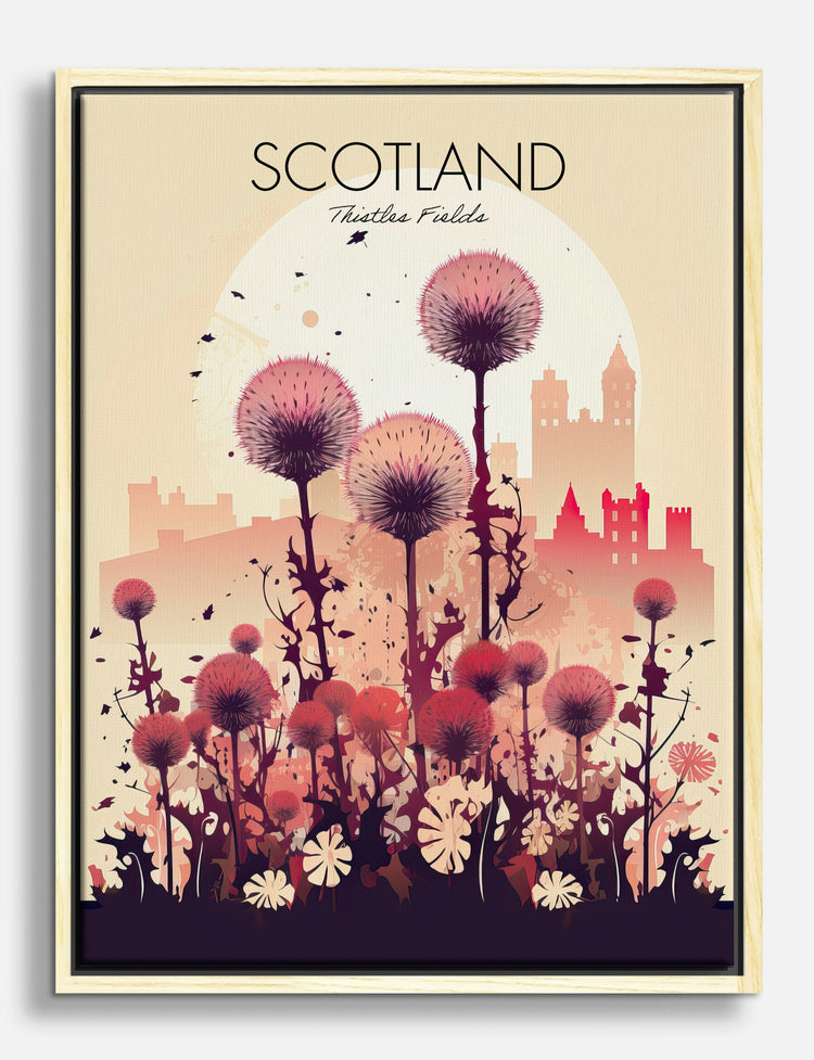 Bold thistles rise against a dreamy Scottish skyline, bringing a sense of storybook wonder right into your space. This piece pops with rosy pinks and soft neutrals, perfect for brightening up your living room or bedroom with effortless style. Youll love how the vintage-inspired palette pairs with modern or classic decor—making your home feel uniquely you, every single day.