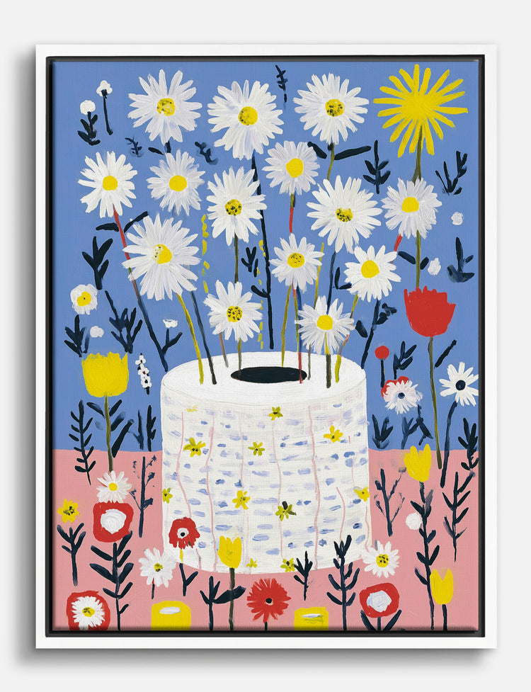 What if your bathroom could be a burst of joy? This whimsical floral scene turns the everyday into something worth celebrating, with daisies and wildflowers blooming from an unexpected centerpiece.