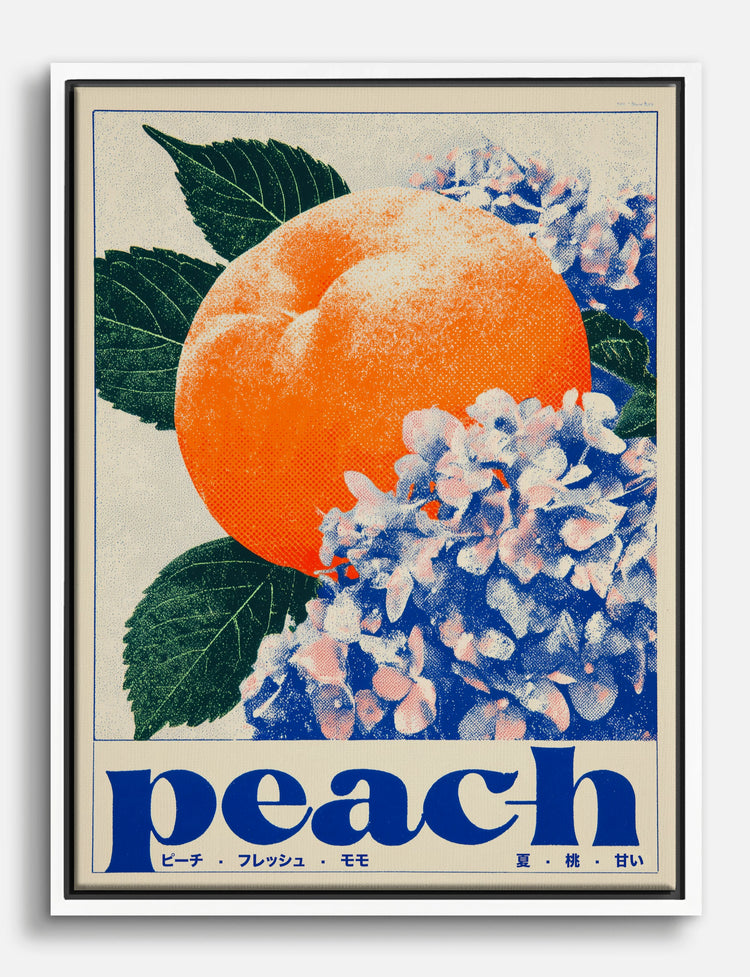 A pop of juicy orange meets dreamy blue in this playful botanical piece. There’s something instantly uplifting about the bold peach nestled among lush, vintage-inspired florals—it’s like a fresh start for your walls.