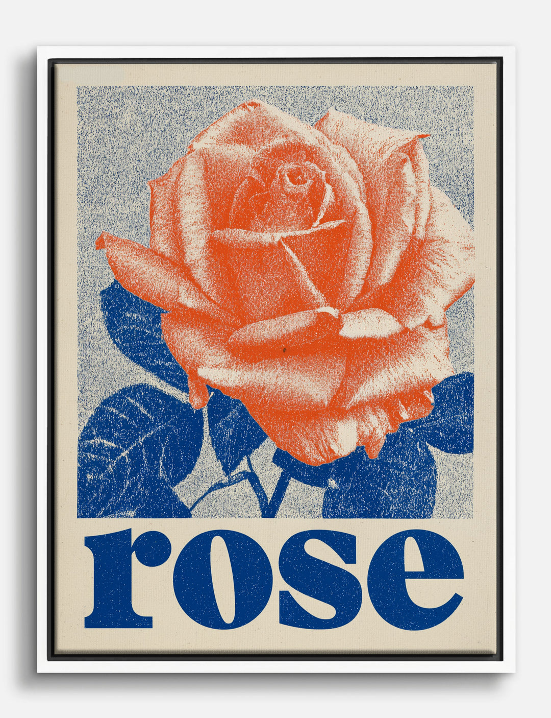 A bold pop of coral and blue brings instant energy to your walls—meet the rose that refuses to blend in. This piece isn’t just pretty; it’s a celebration of self-expression and unapologetic style.