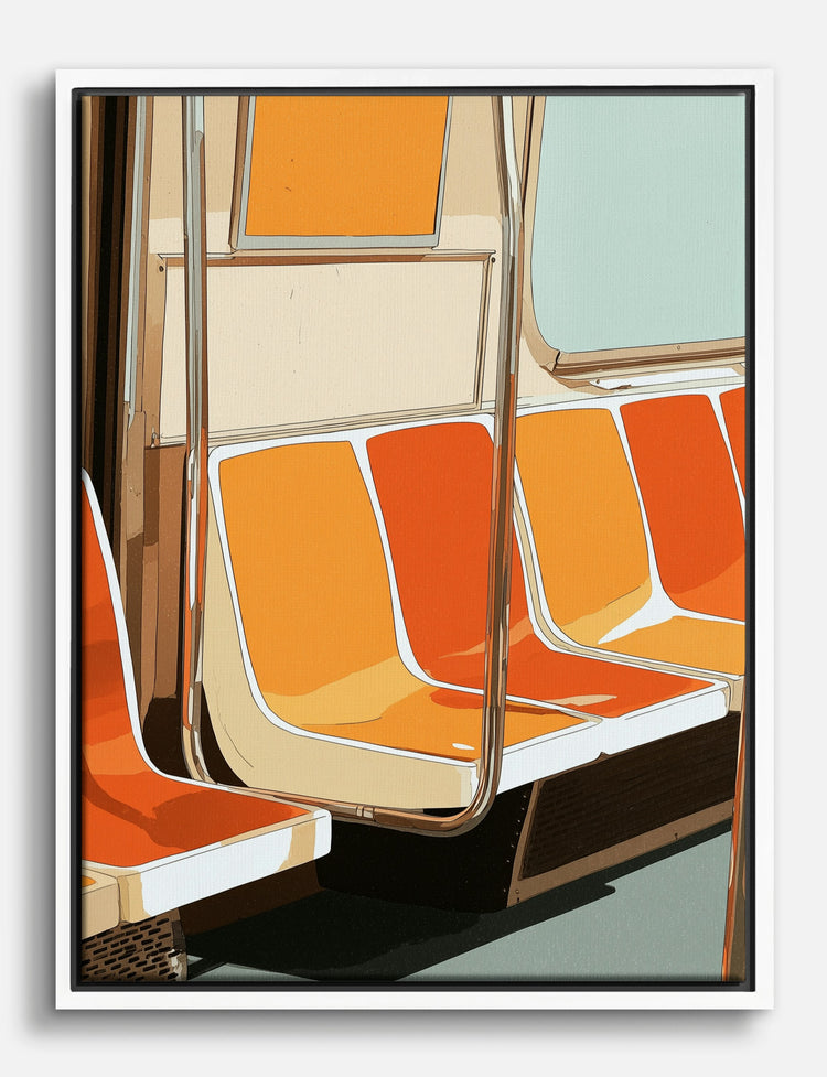 Orange and gold tones bring a burst of urban energy to your walls with this close-up of subway seats. It’s a piece that instantly transports you to the heart of city life—no commute required.