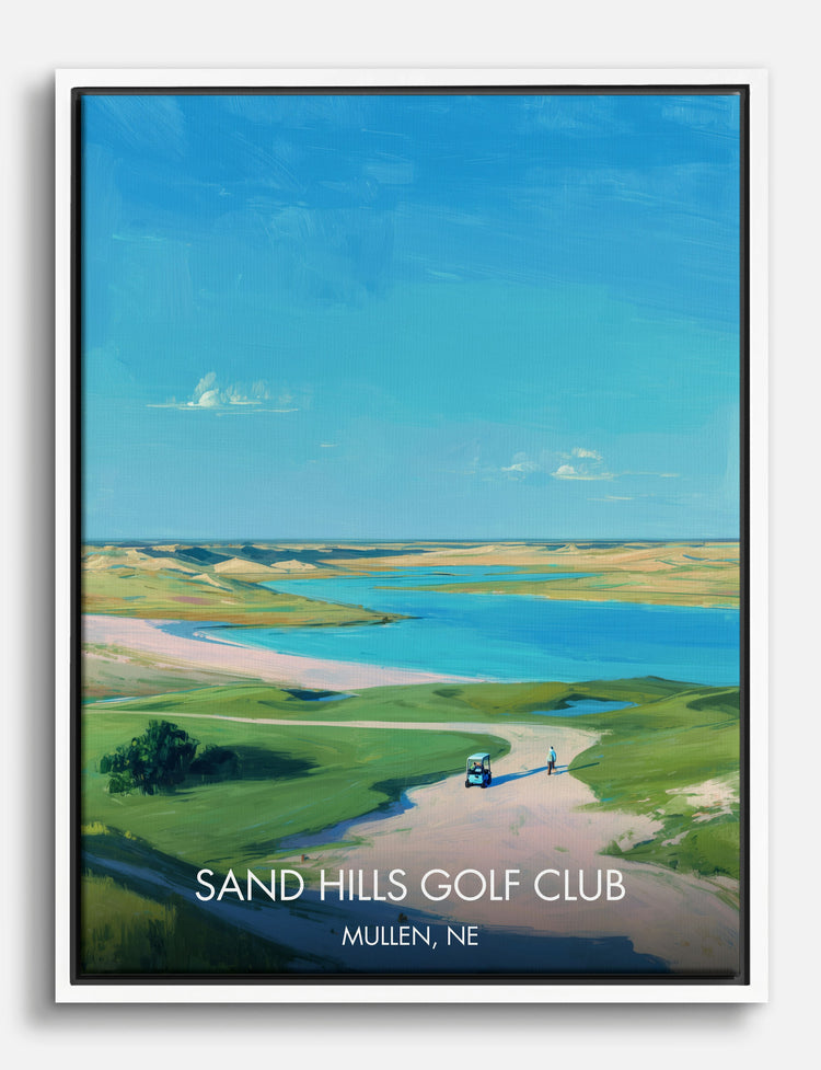 Wide blue skies and rolling greens set the stage for a sense of pure calm. This print captures the peaceful expanse of Sand Hills Golf Club, inviting you to pause and soak in the beauty of open landscapes. Imagine this view greeting you each morning, bringing a breath of fresh air and a touch of luxury to your everyday routine.