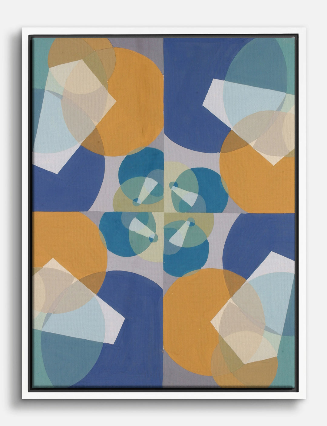 Ever wondered how geometry could feel this inviting? Schillinger Geometric Harmony brings soft, overlapping circles and crisp shapes together in a dance of blue, gold, and white—a composition that feels both playful and sophisticated.