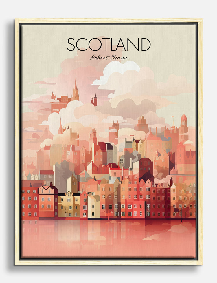 Soft, blushing tones and dreamy city silhouettes bring a warm, inviting energy to your space. This piece captures the poetic charm of Scotland’s historic skyline, balancing nostalgia with modern flair.