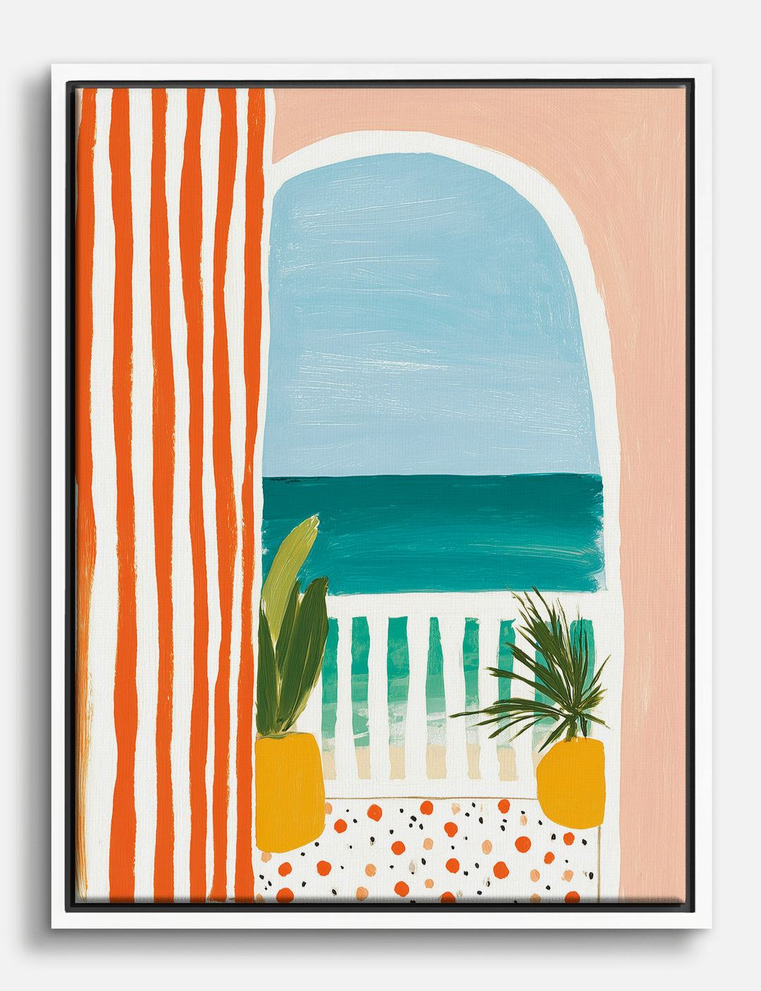 Step into your own slice of the Mediterranean every time you glance at this piece. Bold stripes and playful polka dots bring a sense of vacation-ready style, while a serene ocean horizon invites you to pause and breathe. This artwork pops in any living room or bedroom that craves a burst of color and effortless cool. The sunny palette of peach, orange, and teal is designed to energize your space while still feeling relaxed and welcoming. You’ll love how easily this print transforms your home—no plane ticket required. Pair it with modern or boho decor for an instant mood lift and a daily reminder to slow down and savor the view.
