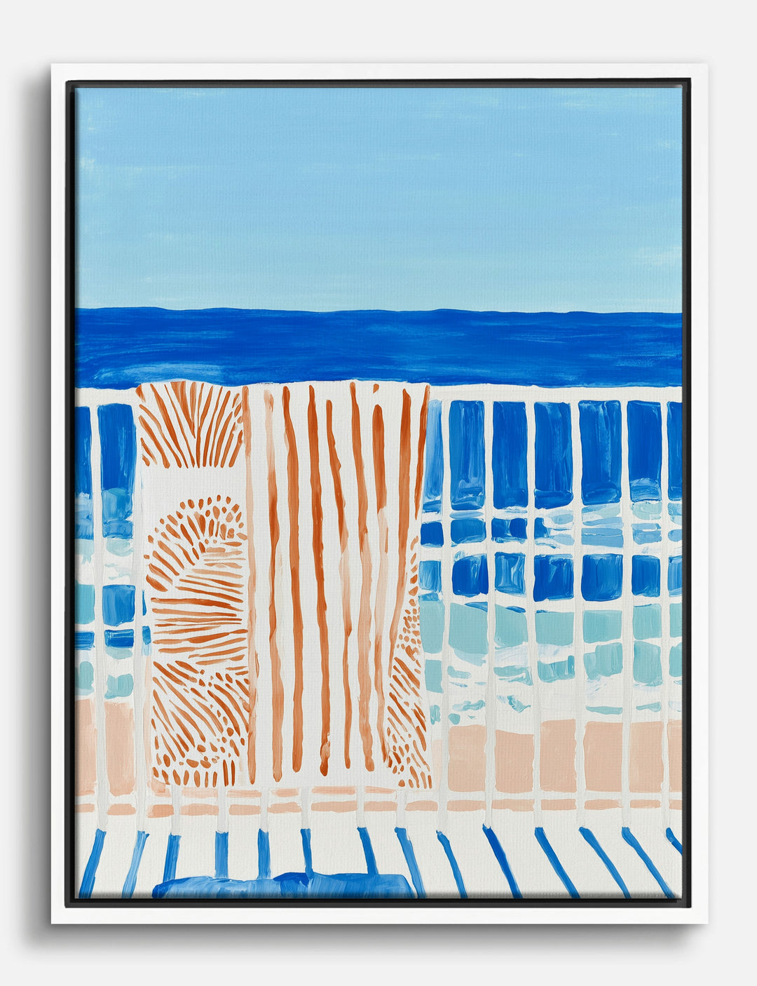 Sun-warmed stripes and sun-bleached blues—this piece instantly transports you to a breezy balcony overlooking endless waves. Let the rhythmic pattern of the towel and the tranquil ocean view bring a sense of calm and coastal charm right into your home. Whether you hang it in your living room or bedroom, it’s a daily invitation to pause and savor the slower, sunlit moments. The fresh blue palette and sandy neutrals pop against both light and dark walls, making it a versatile accent for any decor. You don’t need a passport to feel the beachy bliss—just a spot on your wall. With Seaside Stripes, effortless style and a splash of relaxation are always within reach.