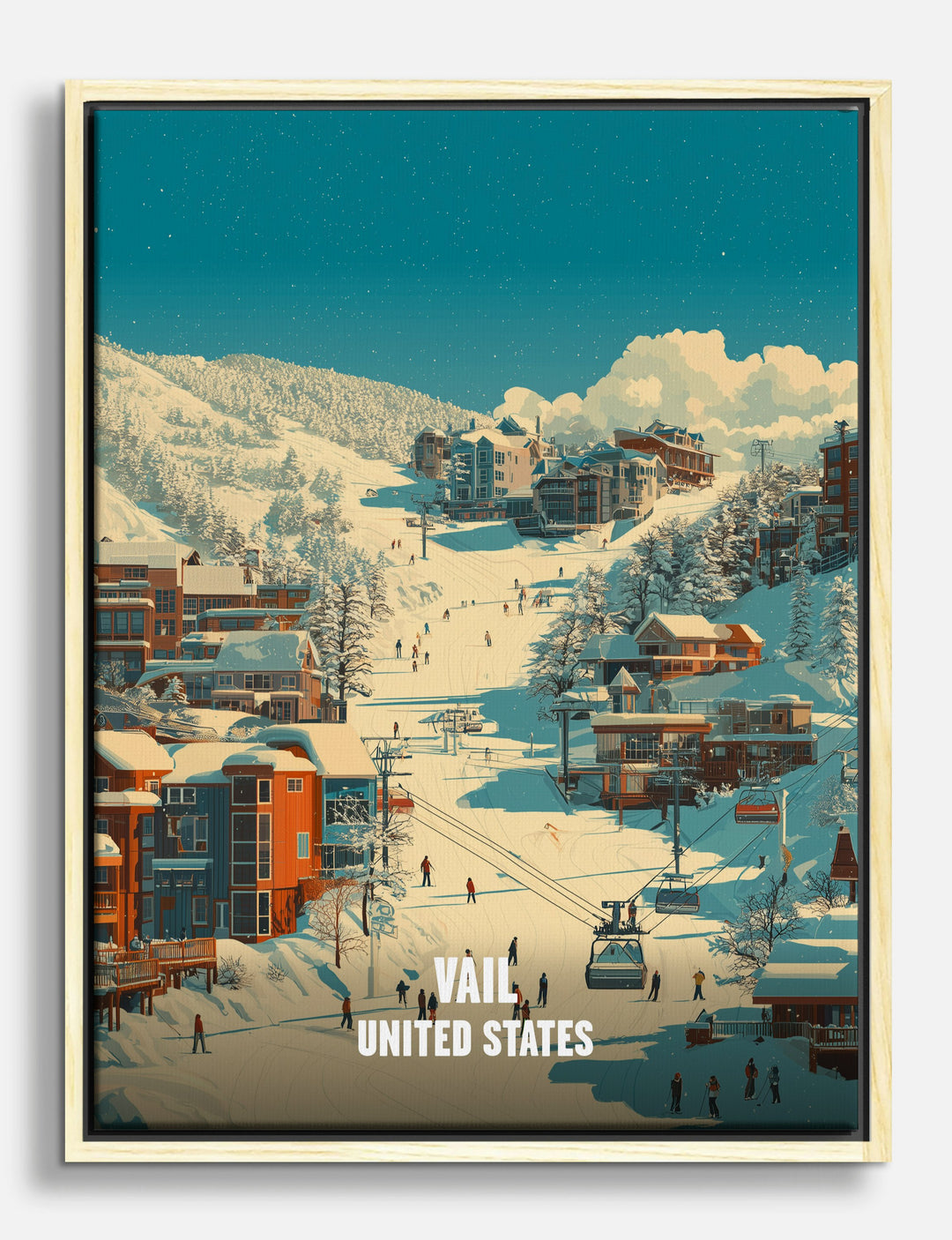 Step into the magic of winter with this vibrant Vail scene—where crisp mountain air, cozy chalets, and powdery slopes set the tone for pure relaxation. Every glance brings a rush of adventure, making your space feel like a welcoming alpine retreat. Perfect for the living room or entryway, this piece instantly energizes any corner with its rich blues, warm wood tones, and sunlit snow. The harmonious palette pairs beautifully with modern, rustic, or eclectic decor—effortlessly elevating your style. Let your walls spark pride and wanderlust, celebrating both your love for travel and your unique sense of home. With this print, great design and everyday joy are always within reach.