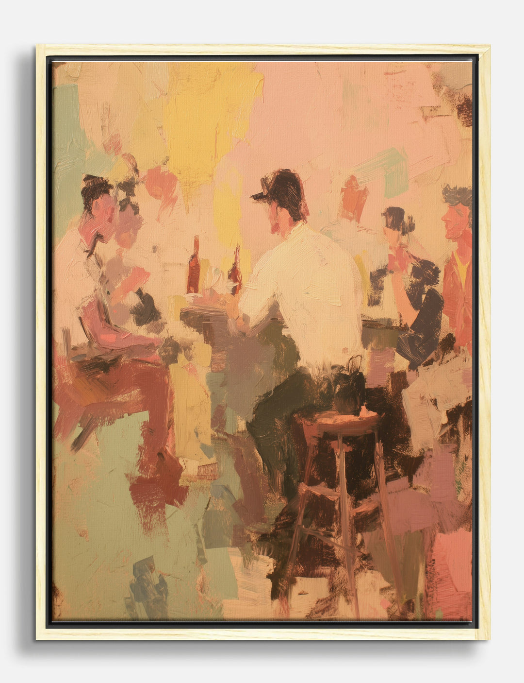 A swirl of soft colors and blurred shapes captures the easy camaraderie of friends gathered around a table. This piece radiates warmth and a sense of belonging, turning any room into a welcoming retreat. Hang it in your dining room or living space and let the lively, impressionistic strokes spark conversation and connection. Its gentle palette of beige and peach complements both modern and vintage decor, making it effortless to add a touch of personality and joy to your home.