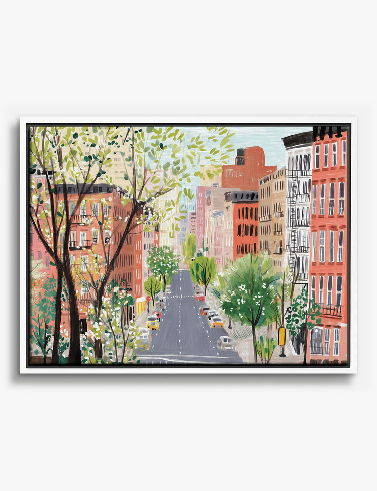 Theres a fresh energy in this cityscape, where leafy trees line the streets and sunlit buildings invite you to pause and take it all in. This piece brings the vibrant spirit of an urban spring right into your home, perfect for anyone craving a daily dose of city charm and optimism. Youll love how the greens and warm brick tones pop against crisp whites, making it a natural fit for a living room, office, or anywhere you want a cheerful lift. Pair it with modern or classic decor—its watercolor style is effortlessly adaptable and always feels unique. Let this artwork remind you that great style is about celebrating your story and the places that inspire you. With Fab, a beautiful transformation is just a print away.