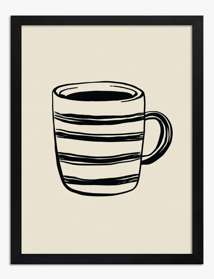 There’s something quietly joyful about your first cup of coffee — and this striped mug piece captures that comforting ritual in a way that feels fresh and modern. The hand-drawn lines and creamy backdrop bring a playful, relaxed vibe to your space without ever feeling fussy. Perfect for kitchens, breakfast nooks, or even your office, its minimal style blends seamlessly with both cozy and contemporary decor. The black and beige palette makes it easy to mix and match with your favorite accessories, whether you’re going for a bold look or keeping things soft and neutral. Let this print remind you that everyday moments deserve a little celebration. With Fab, transforming your walls is as easy (and satisfying) as your morning brew.