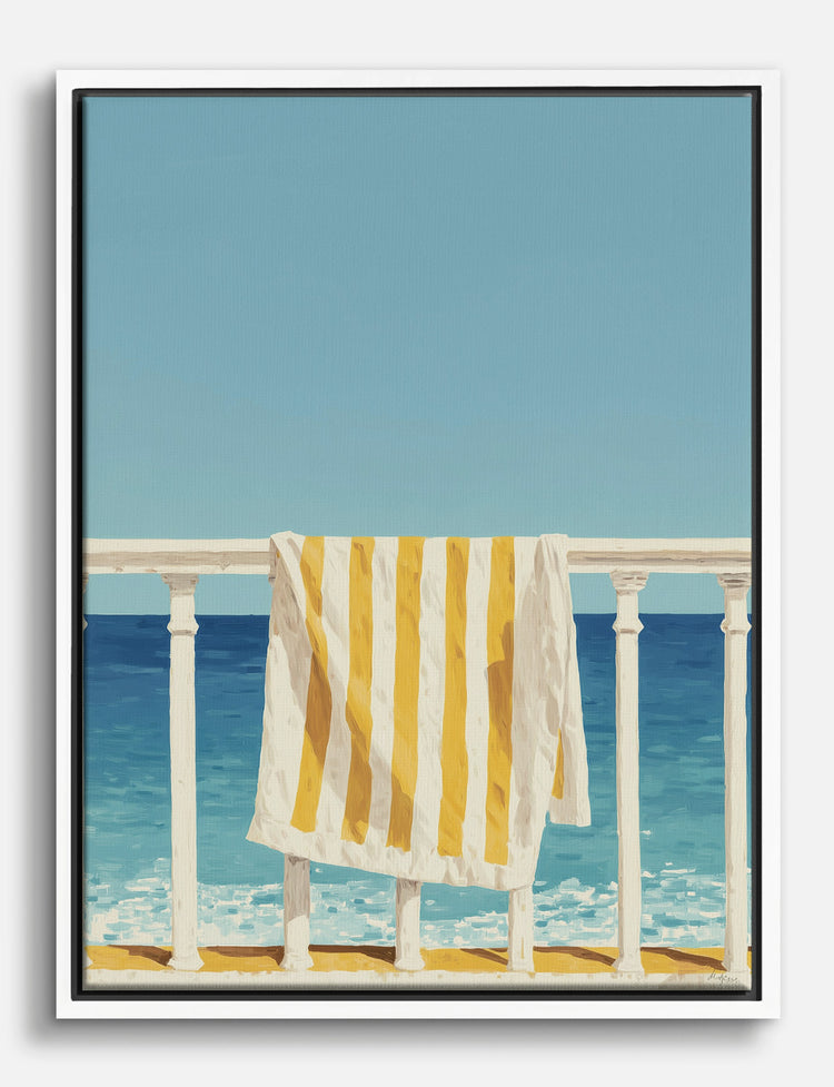 There’s nothing quite like the carefree feeling of a sun-drenched day by the sea. This print captures that magic—striped towel tossed over a white balcony, with endless blue waves stretching beyond. Let this piece bring a splash of coastal calm to your living room or bedroom. The crisp yellow and white stripes pop against tranquil ocean blues, instantly brightening your space and your mood. It’s the kind of effortless style upgrade that makes every day feel like summer. Hang it up and watch your home transform into a breezy, inviting retreat—no passport required. You deserve a space that feels both relaxed and refined, and this print is your shortcut to easy, affordable transformation.