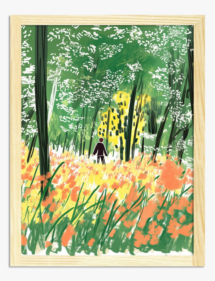 Step into a world where wildflowers and sunlight guide your every step. This vibrant scene captures the simple joy of wandering through a blooming meadow, with dappled greens and pops of golden yellow that instantly brighten any space. Let your living room or bedroom become a sanctuary of calm and inspiration. The playful, painterly strokes bring a fresh energy—perfect for anyone craving a little more nature and color in their everyday. You’ll love how the lush greens and warm oranges pair effortlessly with both modern and boho decor. It’s a daily reminder that adventure and comfort can live side by side—right on your walls.
