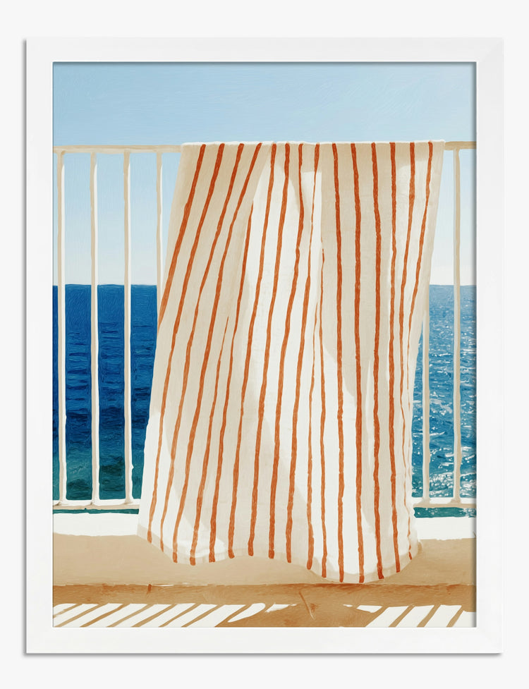 Warm sunlight, crisp sea air, and a towel swaying in the breeze — this piece instantly transports you to carefree coastal afternoons. The bold, sun-washed stripes pop against a backdrop of endless blue, bringing a relaxed, vacation-ready vibe to your space. Perfect for your living room or bedroom, it’s an effortless way to invite a touch of the Mediterranean into your everyday. The fresh palette of terracotta and white feels both modern and timeless, complementing everything from minimalist interiors to boho retreats. Let this print spark memories of spontaneous getaways and inspire new moments of calm at home. With Sunlit Stripes by the Sea, you’ll turn any wall into your own slice of serene paradise — no passport required.