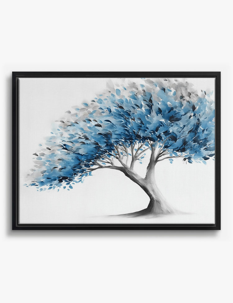 Bold color meets gentle movement in this stunning blue tree. A sweep of cool blues and soft grey gives your space a breath of fresh air—like a quiet morning walk, right in your living room or bedroom. This piece doesn’t just decorate; it transforms your wall into a place of calm and creativity. The flowing branches and airy leaves invite you to pause, breathe, and feel at home. Blues and greys play well with almost any decor, adding a stylish, serene touch without overpowering your vibe. Whether you’re refreshing your space or finishing off a new look, this print makes it easy to feel proud of your home.