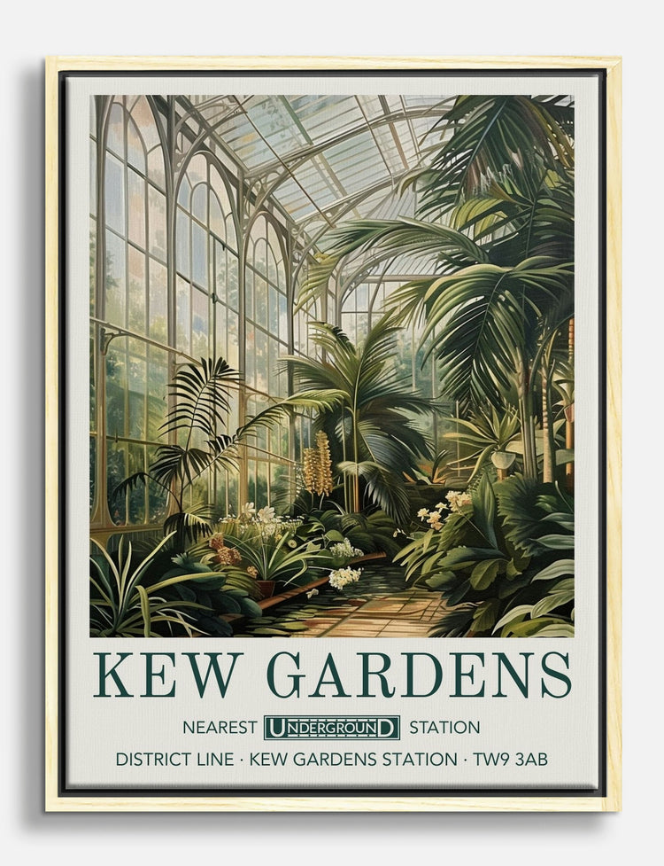 Step into a lush oasis with this vibrant depiction of Kew Gardens iconic glasshouse. Let the verdant greens and towering palms breathe life and tranquility into your home. Perfect for your living room or office, this piece harmonizes beautifully with both modern and vintage decor. Feel a sense of pride and serenity as you transform your space into a botanical paradise — effortlessly and affordably.