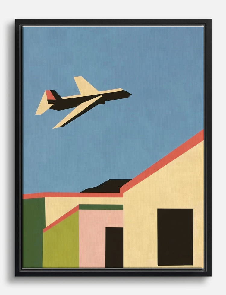 Feel the thrill of adventure with every glance at this bold piece. A plane soars above vibrant rooftops, bringing a dynamic energy to your space. Perfect for your living room or office, its striking colors and clean lines add a modern touch that complements any decor. Let this artwork inspire your wanderlust and transform your home into a stylish haven.