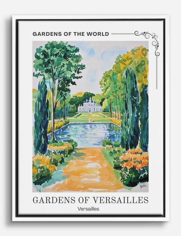 Step into a world of timeless elegance with this vibrant depiction of the Gardens of Versailles. This piece brings the lush greenery and tranquil waters right into your living space, creating a serene escape from the everyday. Perfect for a living room or hallway, the harmonious palette of greens and blues complements any decor style. Youll feel a sense of pride and joy as this artwork transforms your home into a personal haven of style and grace.