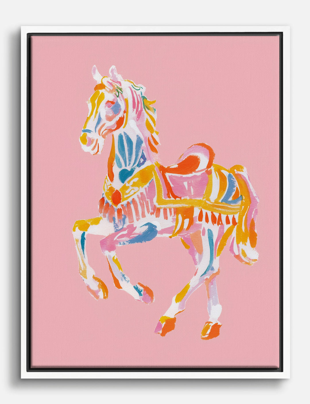 Step into a world of playful color with this lively horse illustration. Bursting with energetic strokes of pink, orange, yellow, and blue, this piece instantly lifts the mood of any room. It’s a visual celebration of movement and imagination — perfect for anyone who wants their space to feel joyful and full of life.