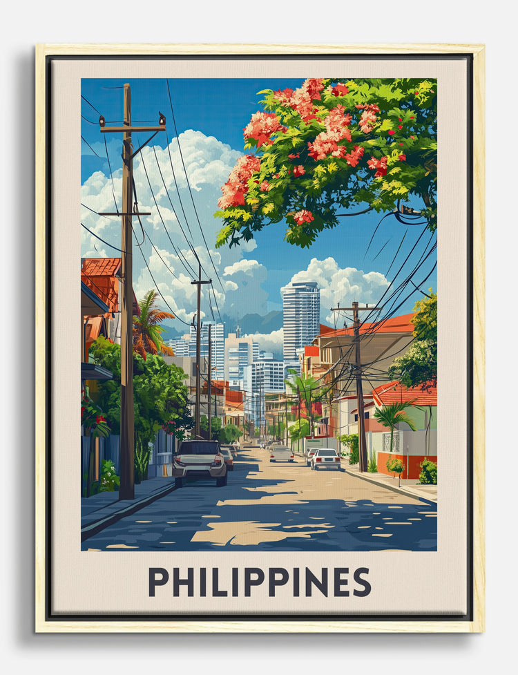 Step into a sunlit journey with this vibrant street scene of Manila. The lush greenery and bustling urban energy bring life to any room, making it the perfect piece for your living space. Let the colorful palette of reds, greens, and blues harmonize with your decor, infusing your home with a sense of wanderlust and pride. Affordable and unique, this artwork transforms your space effortlessly.