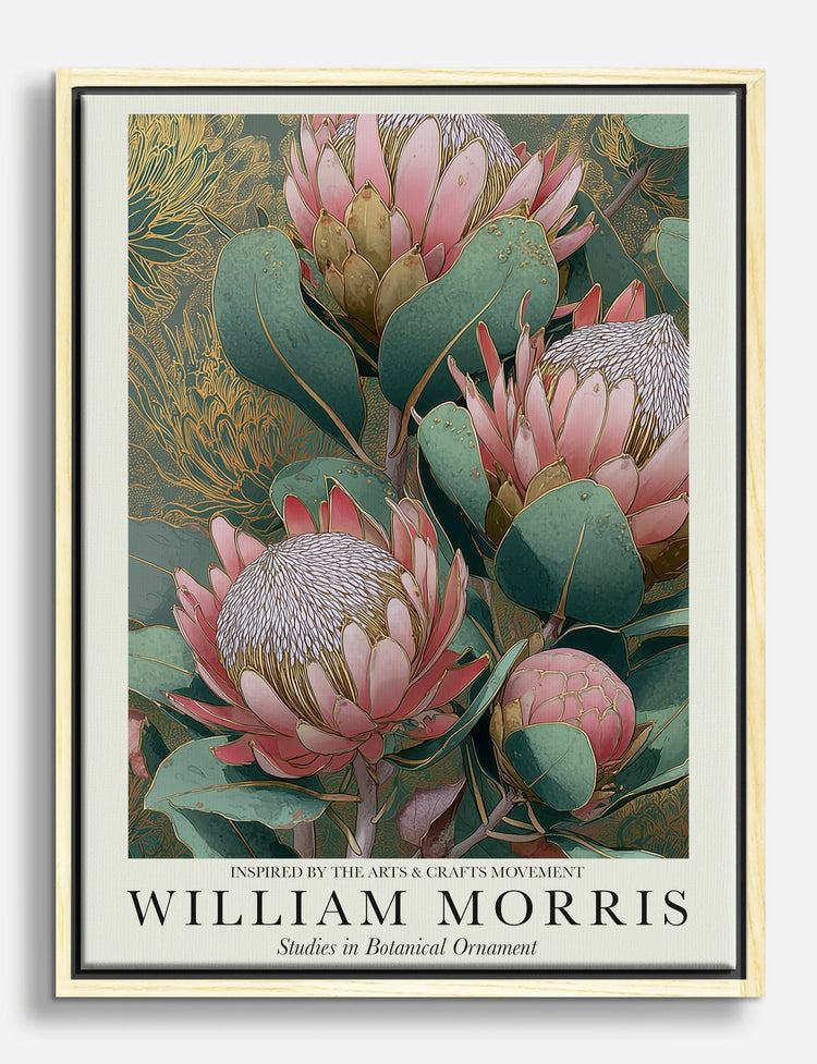 Soft pink petals and lush green leaves bring a sense of calm sophistication to any room. This William Morris-inspired piece is all about celebrating the beauty of nature, right on your walls.