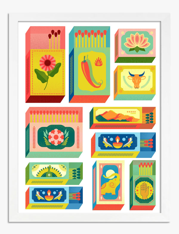 Affiche collection de boîtes d'allumettes aux couleurs vives