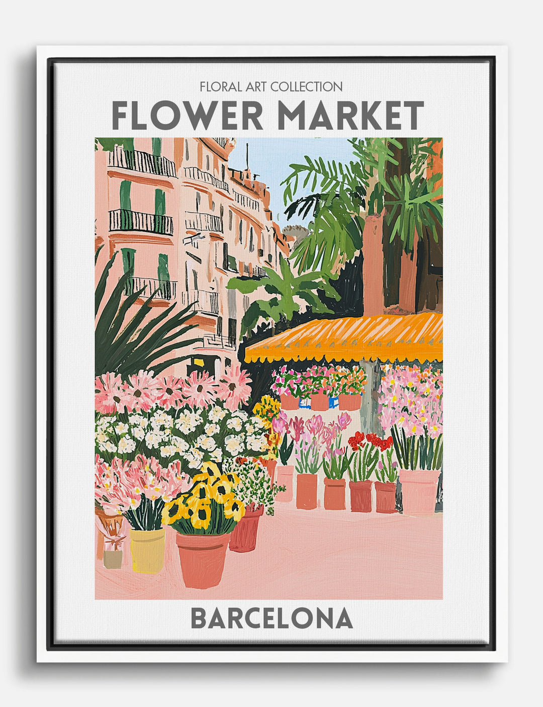 Step into a sunlit oasis with this charming depiction of a bustling Barcelona flower market. The vibrant hues and lively scene will infuse your space with the energy and warmth of a Mediterranean day. Perfect for your living room or office, the playful colors and joyful atmosphere create a welcoming ambiance. Embrace the effortless elegance and make your space uniquely yours with this delightful piece from our floral collection.