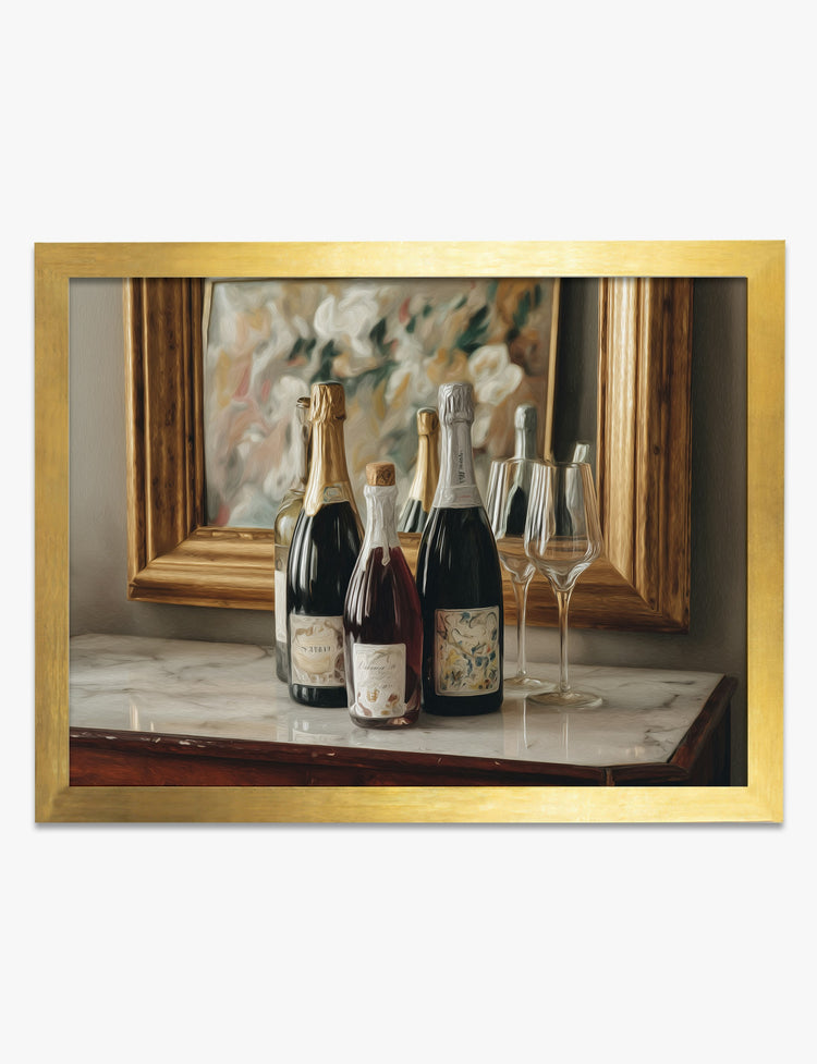 Raise a glass to effortless style with this inviting scene of wine bottles and sparkling glasses. The soft, painterly backdrop and classic gold frame evoke the warmth of a European bistro, instantly making your space feel more welcoming and refined. Perfect for your dining room or living area, this piece sets the mood for memorable evenings and everyday elegance. The neutral tones and hints of gold blend beautifully with both modern and vintage decor—no need to redecorate, just hang and enjoy. Youll love how this artwork inspires conversation and adds a touch of celebration to your home. Its a simple way to create a space you’re proud to share—stylish, unique, and unmistakably yours.