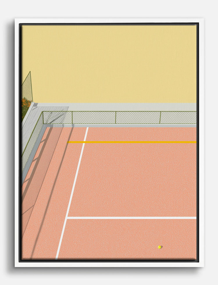A quiet corner of a tennis court becomes your new favorite statement piece. The muted pinks and soft yellows bring a playful energy, while the clean lines and open space create instant calm. It’s a reminder that sometimes, less truly is more. Hang this in your office or hallway when you want to brighten your day without overwhelming your space. The subtle, sunlit palette pairs effortlessly with modern, minimalist, or Scandinavian decor—think pale woods, crisp whites, and pops of color. Give your home that ‘I know what I’m doing’ vibe. With just one print, you’ll spark conversation and show off your effortlessly cool style.