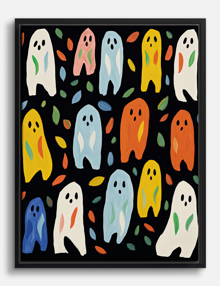 Who says Halloween can’t be cheerful? These quirky, Matisse-inspired ghosts are here to bring a pop of playful energy to your space, no matter the season. With their bright, candy-colored shapes and friendly faces, they instantly liven up any wall and spark smiles from everyone who visits.