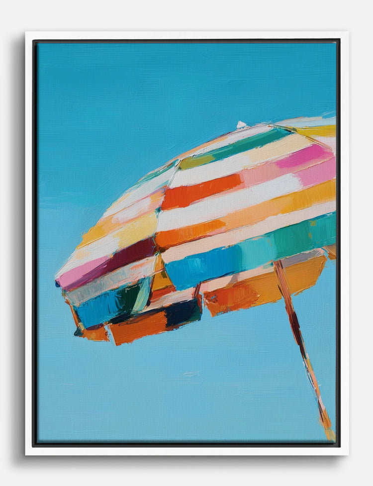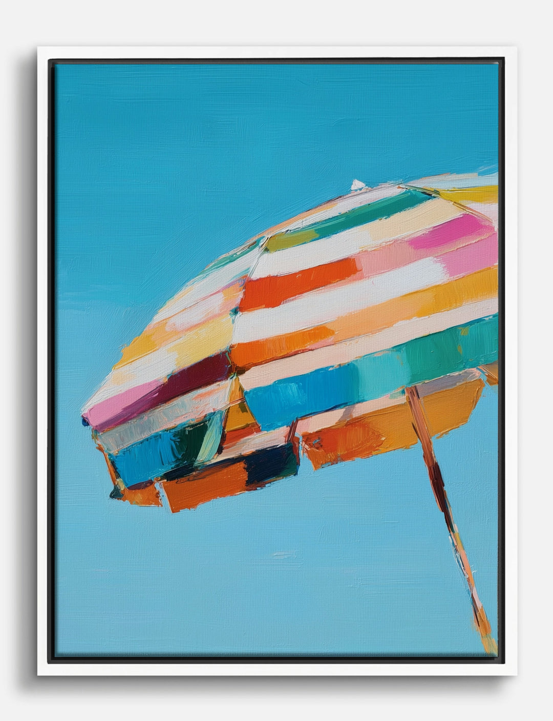 Bold stripes, sun-soaked colors, and a sky that feels endless—this piece is pure summer on your wall. Let your space radiate the easy, carefree vibe of a day at the beach, no matter the season.