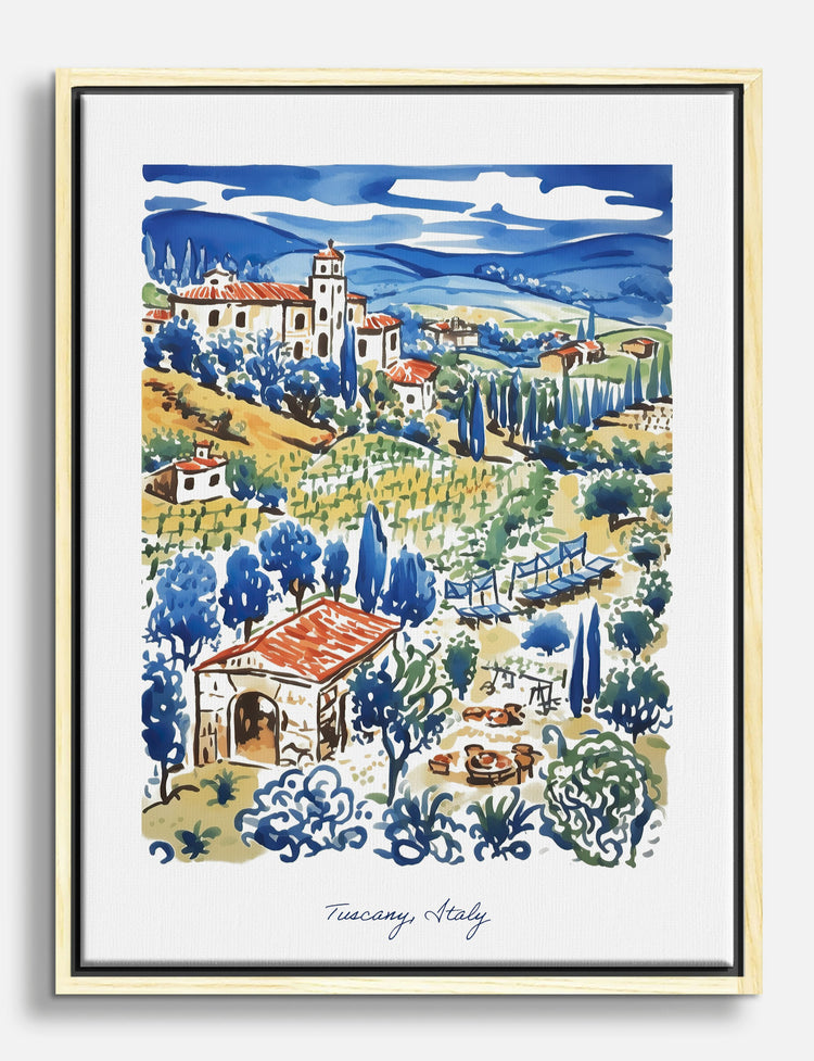 Rolling hills and sun-drenched rooftops instantly whisk you away to the heart of Tuscany. This charming scene brings warmth and rustic elegance into your home, creating a cozy atmosphere that feels both timeless and fresh. Whether it’s brightening your dining room or adding a storybook touch to your entryway, the earthy reds and calming blues pop against any decor, making your space feel uniquely yours. Bring home a little slice of Italy—no passport required.
