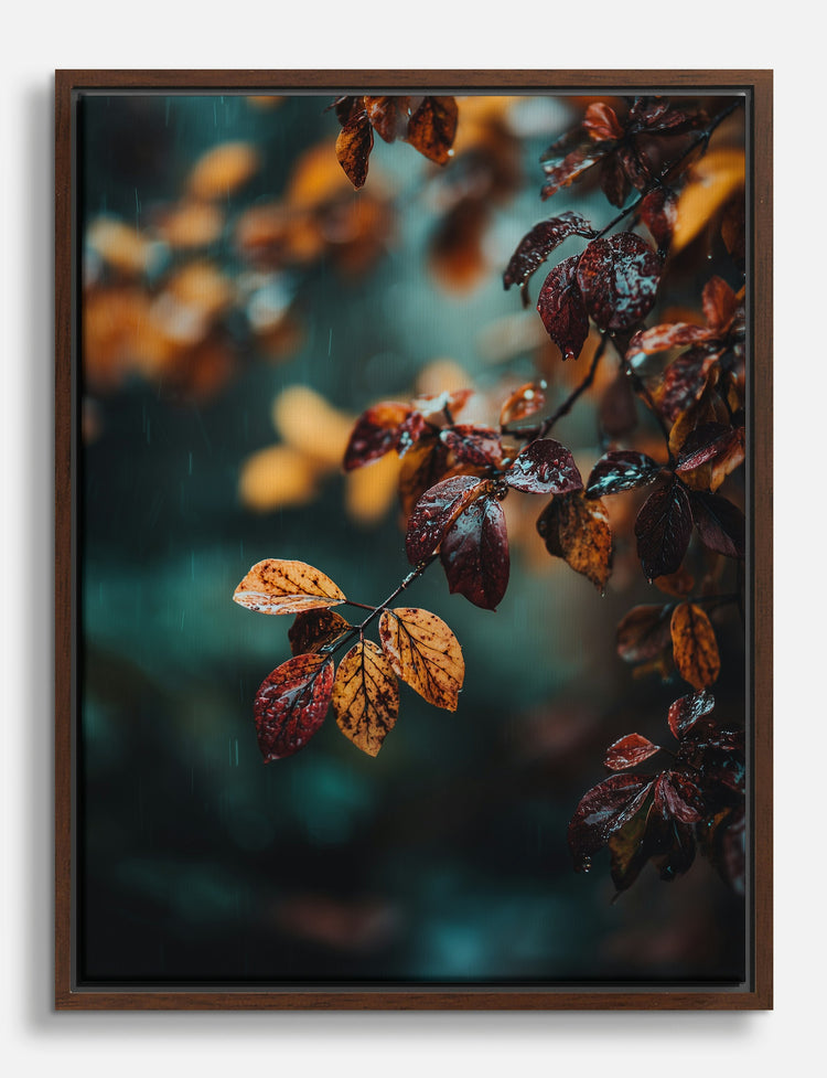 A gentle rainfall brings out the richest colors in nature — and this piece captures that quiet beauty perfectly. Deep amber and burgundy leaves glisten with fresh raindrops, inviting a sense of calm to your space. You’ll feel instantly grounded every time you catch a glimpse of these moody, rain-soaked branches.