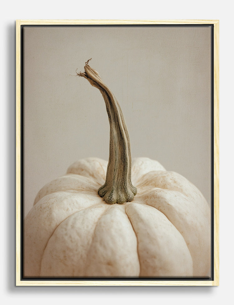 A soft, creamy white pumpkin stands tall, its elegant stem curving with rustic charm. This piece captures the quiet beauty of autumn, inviting a sense of calm and comfort into your space. Its perfect for creating a cozy focal point in your kitchen or adding a gentle, grounded vibe to your entryway.