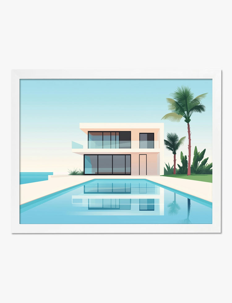 Step into your own slice of paradise with this striking portrait of a sun-soaked modern home. Clean lines, floor-to-ceiling windows, and a glistening pool set the scene for effortless sophistication—right on your wall. This piece instantly infuses your space with a breezy, uplifting vibe, making it perfect for your living room or bedroom. The cool blues and crisp whites pop against any decor, giving you that vacation-fresh feel all year long. Let this artwork be your daily reminder that style and calm can be as easy as hanging a picture. With Fab, you’ll transform your home into a space you’re proud to show off—no renovation required.