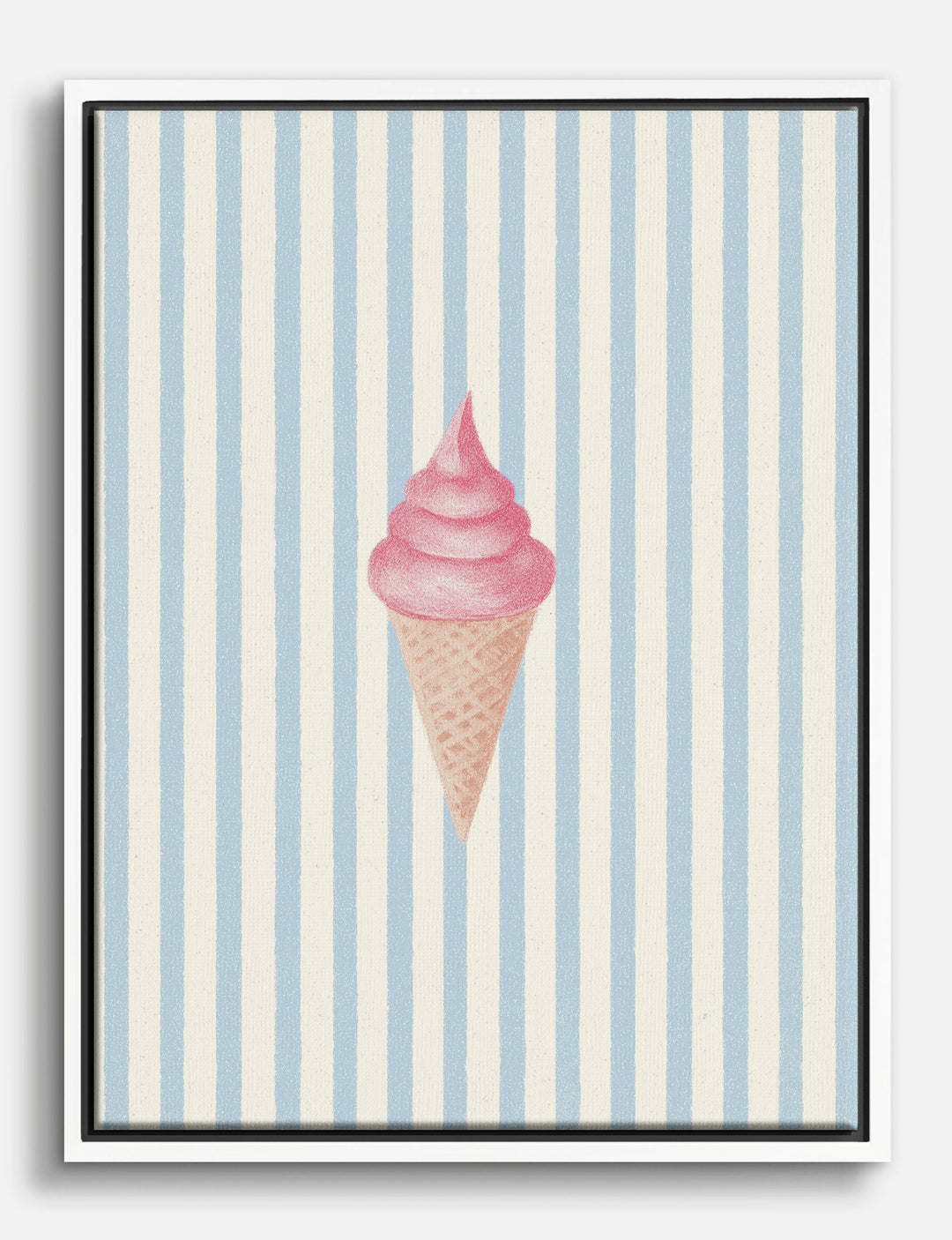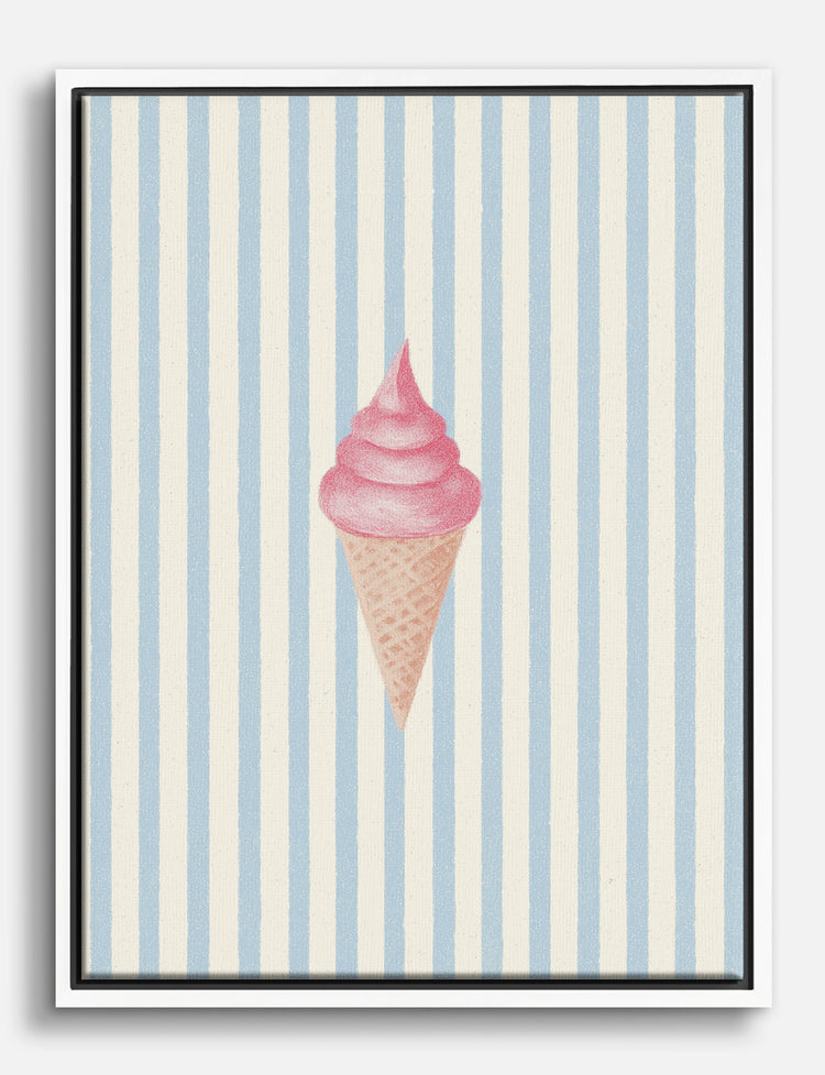 A swirl of pink sweetness takes center stage, instantly brightening your space with playful charm. This piece brings all the nostalgia of summer treats—without the sticky fingers—making it perfect for anyone who loves a touch of whimsy in their home. Hang it in your kitchen or dining nook and let it spark smiles, or use it in a kids room to create a space where imagination and delight are always on the menu. The soft blue and white stripes pair effortlessly with both modern and vintage decor, keeping your style fresh, fun, and easy to update. With this print, you’re not just decorating—you’re serving up a daily dose of joy. Transform your walls into a happy place where every day feels a little sweeter.