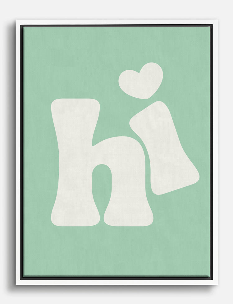 Start every day with a cheerful greeting—right on your wall. This playful hi artwork, with its soft mint green backdrop and bubbly, retro-inspired lettering, instantly lifts the mood of any space. It’s like a smile that never fades, inviting warmth and friendliness into your home.