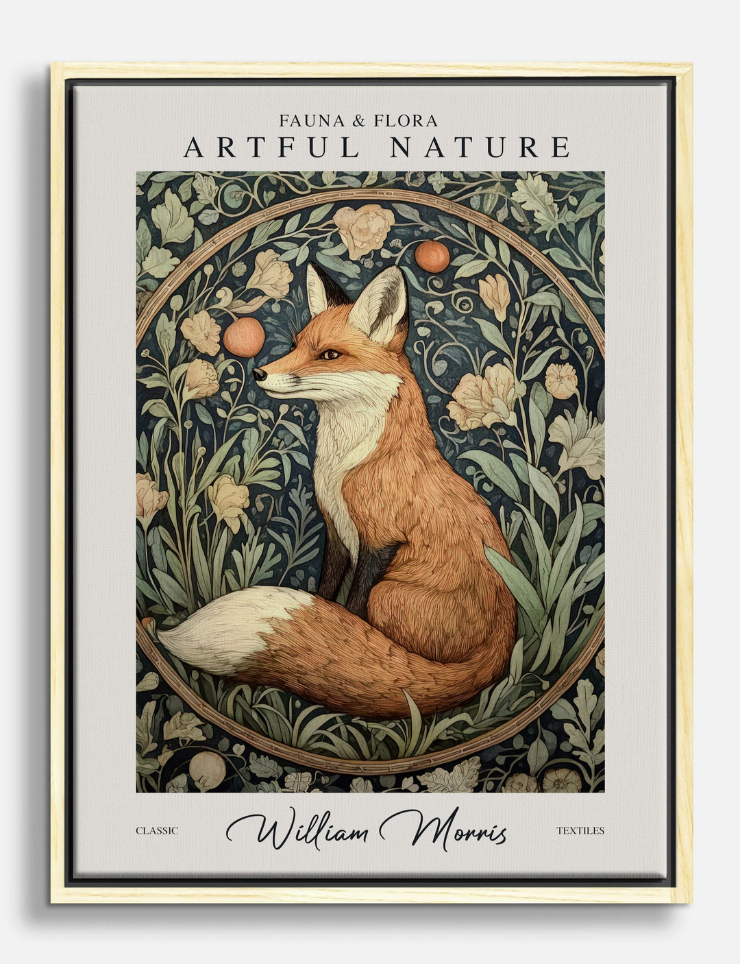 A poised fox sits among lush wildflowers, bringing a touch of storybook magic into your home. Let this artful nod to William Morris fill your space with a sense of calm wonder and natural elegance. Its earthy palette of browns and greens pairs effortlessly with both modern and vintage decor, making it perfect for your living room or a cozy bedroom nook.