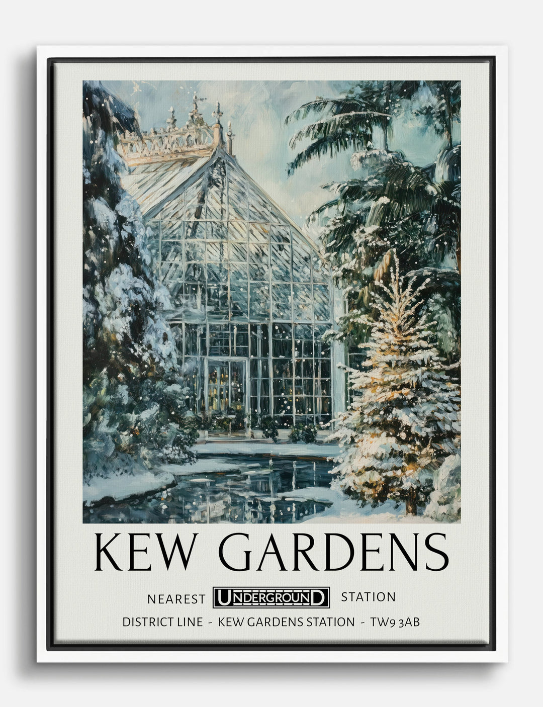 Step into a serene winter wonderland every time you glance at this enchanting scene of Kew Gardens dusted in snow. The vintage charm and delicate glasshouse details instantly add a sense of calm and quiet beauty to your space—perfect for cozying up in your living room or creating a peaceful retreat in your bedroom.