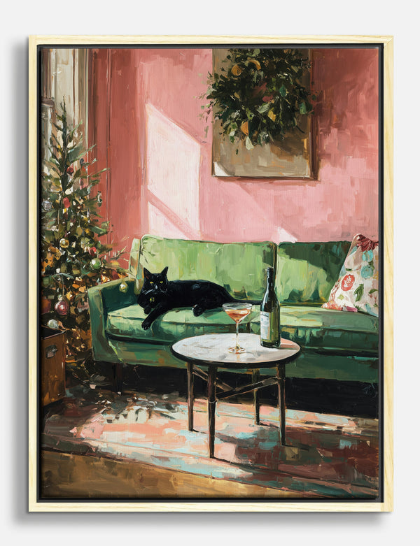 Holiday Glow with Cat Canvas Print