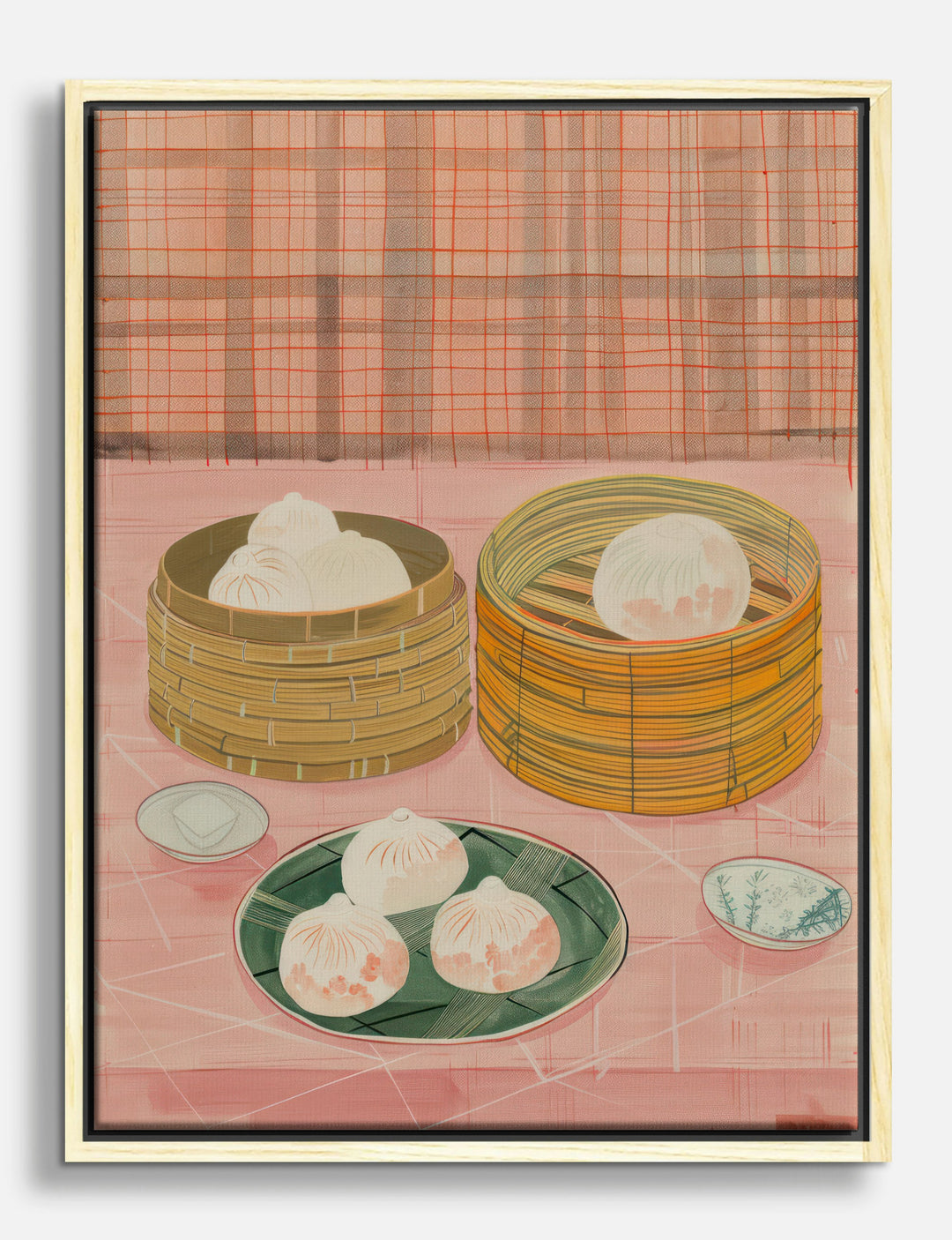 Why settle for ordinary kitchen walls when you can serve up style? This charming piece captures the simple joy of sharing dim sum, bringing warmth and a dash of nostalgia to your space. Soft pinks and earthy bamboo tones make it a perfect accent for kitchens or dining nooks, instantly inviting you to linger a little longer over every meal.