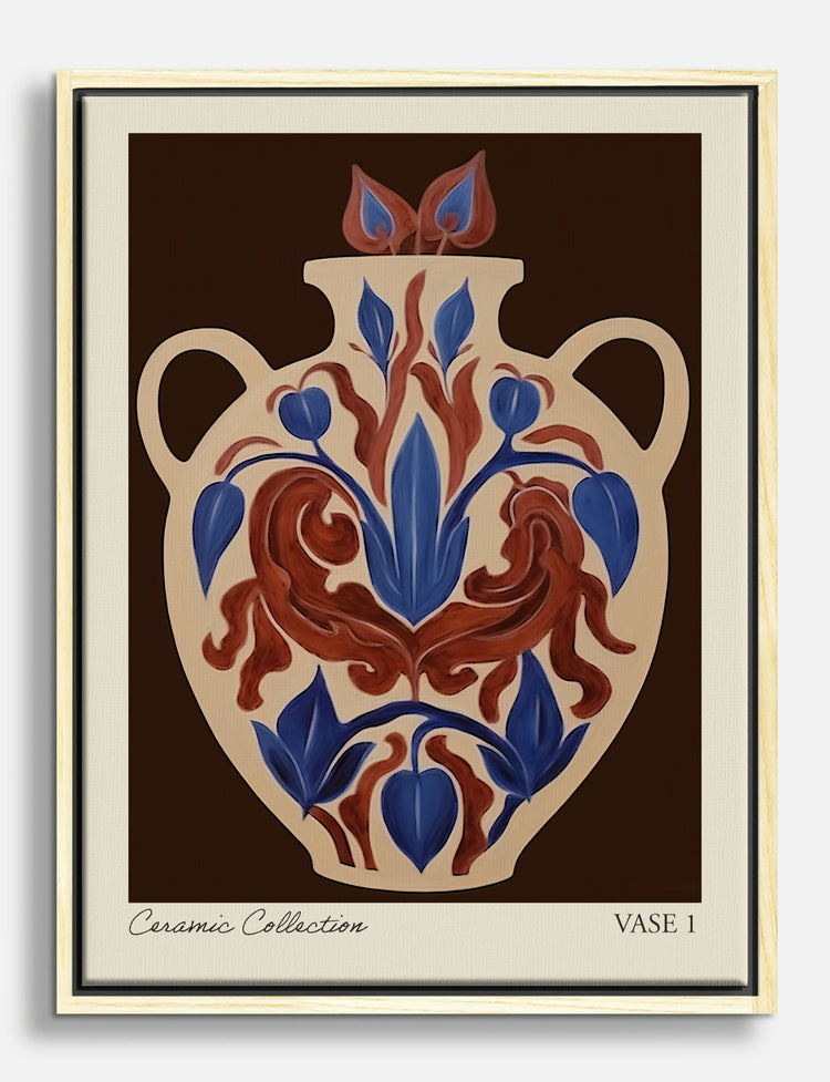 Bold botanical curves meet timeless tradition in this striking vase illustration. The deep blue and rich terracotta hues instantly energize your space, making every glance feel like a fresh burst of creativity. Perfect for your living room or entryway, this piece brings a touch of curated charm—no renovation required. Let your walls reflect your unique style and feel that everyday pride in a home that feels truly yours.