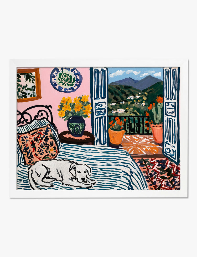 Let your space tell a story of comfort and creativity. This vibrant piece bursts with painterly charm—sunny florals, playful patterns, and a loyal pup lounging on the bed all invite you to slow down and savor the moment. Perfect for your bedroom or that cozy reading nook, it transforms any wall into a window onto rolling hills and sunlit mornings. The bold mix of colors—blues, pinks, and greens—makes it a natural fit for both eclectic and modern decor, adding instant personality and warmth. Hang it up and watch your room come alive with a sense of easygoing joy—proof that great style doesn’t have to try too hard. With Fab, you can create a home that feels uniquely yours, every single day.
