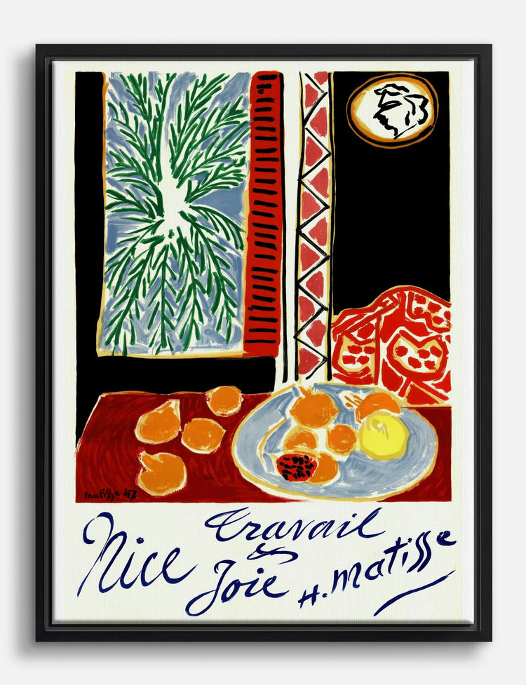 Sunlight, citrus, and a pop of painterly flair—this Matisse-inspired piece brings pure joie de vivre right to your walls. The zesty palette of oranges, reds, and leafy greens instantly energizes any space, while the playful forms spark conversation and creativity.