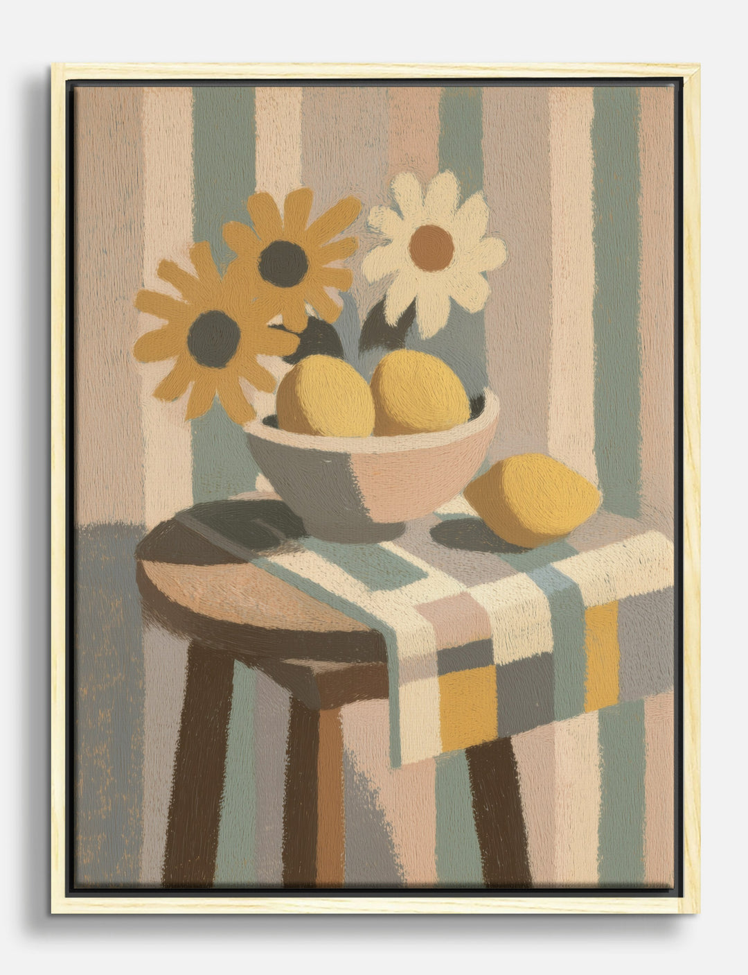 Fresh as a sunny morning, this playful piece brings a burst of cheer wherever it lands. The soft stripes, golden lemons, and whimsical daisies instantly brighten your space—no green thumb required.