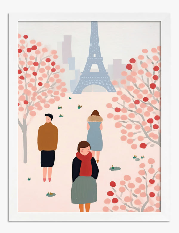 Affiche promenade d'hiver en forêt, manteaux rouges