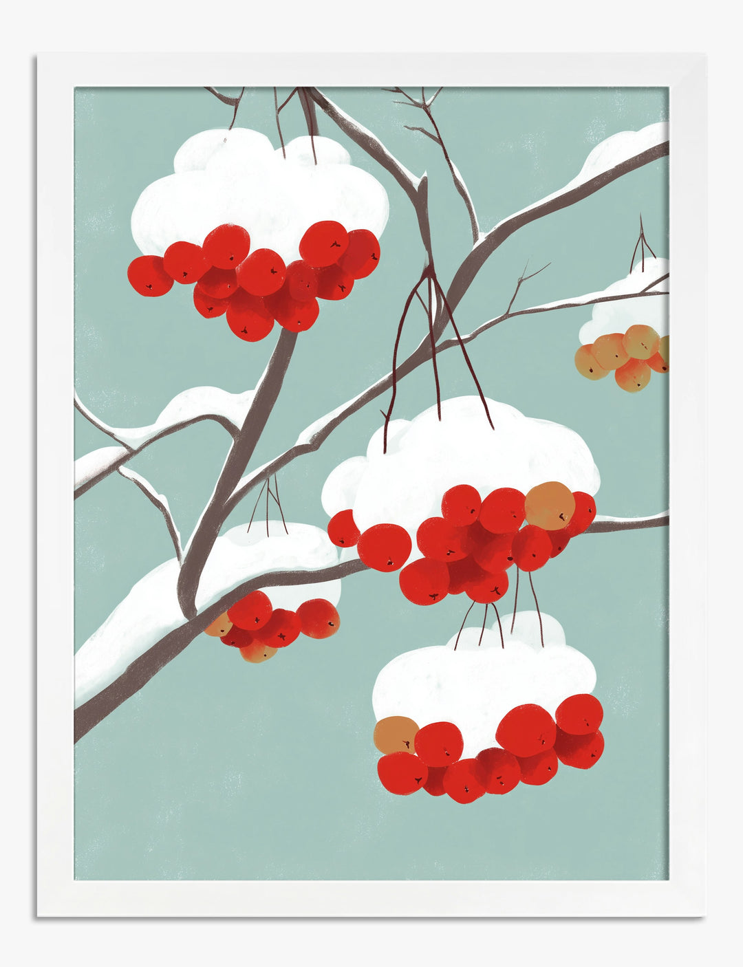 Envie d’une touche de couleur fraîche dans votre intérieur ? Cette affiche aux baies d’hiver, audacieuse, insuffle une énergie immédiate et une pointe de panache naturel à vos murs. Des grappes de baies rouges émergent d’épaisses couches de neige, dessinant un contraste saisissant, à la fois moderne et serein.